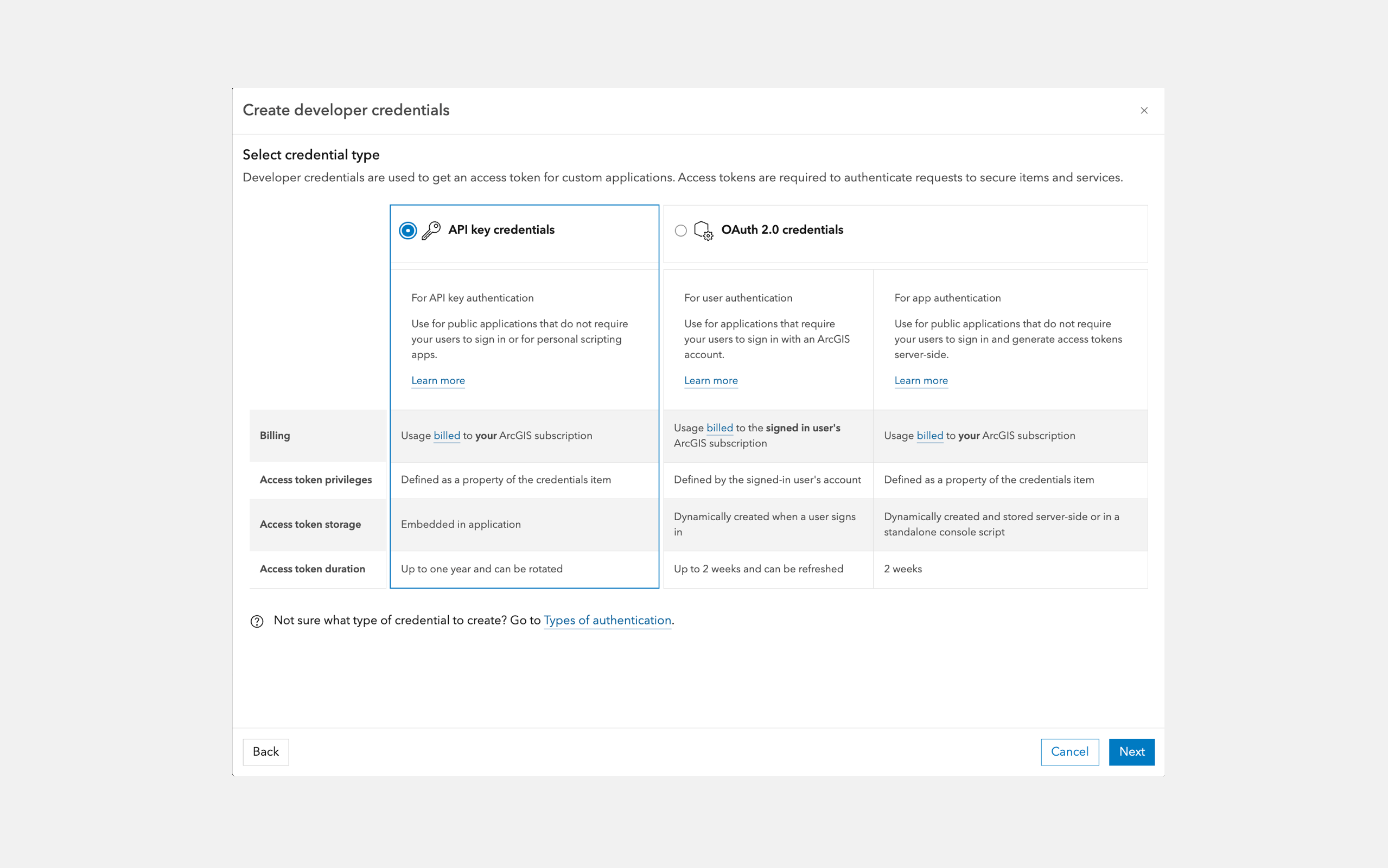 Create an account to generate developer credentials, access development tools, and monitor usage of ArcGIS services.