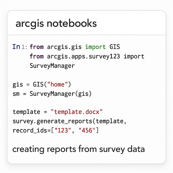 Learn how to create reports from survey data using notebooks and the ArcGIS API for Python.
