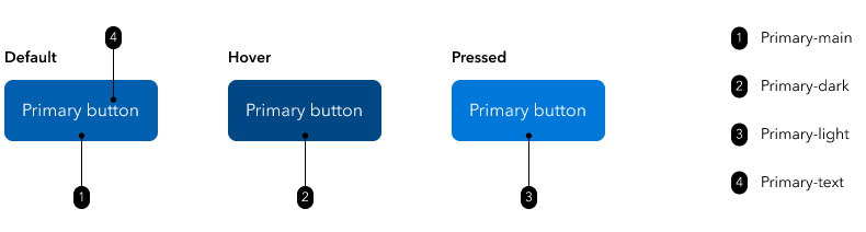 *When a button uses the primary color, the default, hover, and pressed states of a button use the three primary color shades. *