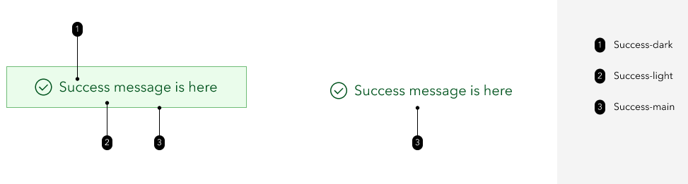 Success colors are used for success status messages, such as messages that display when a widget process succeeds.