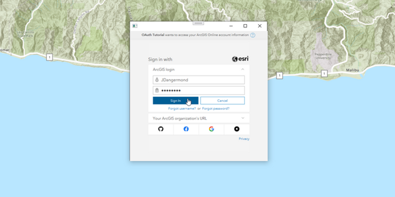 Learn how to implement user authentication to access a secure ArcGIS service with OAuth credentials.