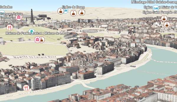 In this sample we visualize 700 points of interest (museums, restaurants etc.) in Lyon, France. This is how the city would look like by just visualizing all the points without any enhancement: