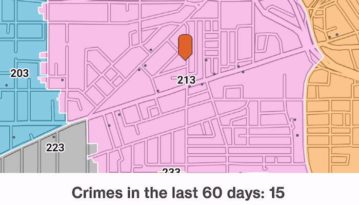 Tap on any neighborhood to see the number of crimes in the last 60 days in a TextView.