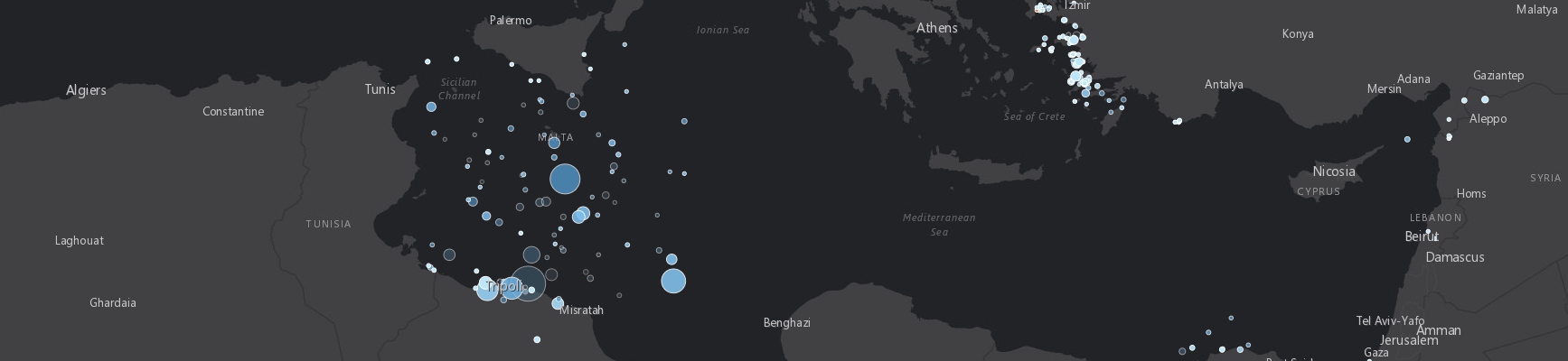 # The field used here represent when migrants went missing based on the date the incident was reported, and use proportional symbols to show how many migrants were found dead