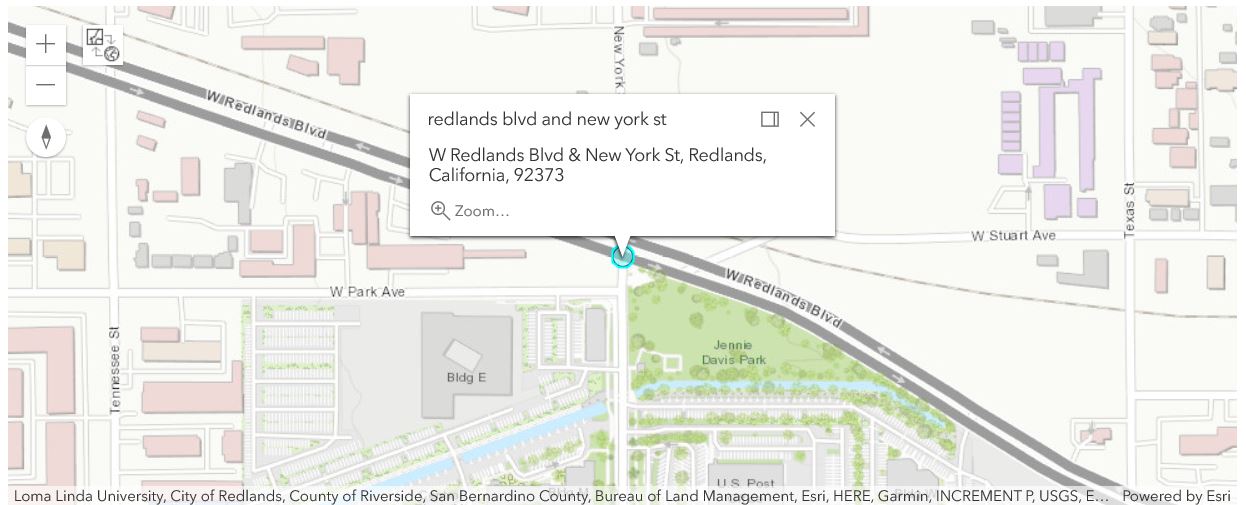 single_line_address = "380 New York Street, Redlands, CA 92373"# geocode the single line address