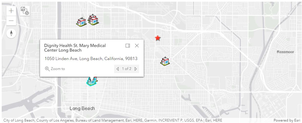 hospitals = geocode('hospital', location=[-118.15, 33.80], max_locations=10)