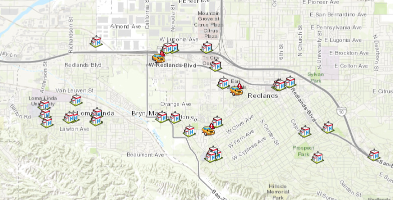 facilities = hospital_fl.query(where="Dba_city='REDLANDS' or Dba_city='LOMA LINDA'", as_df=False)