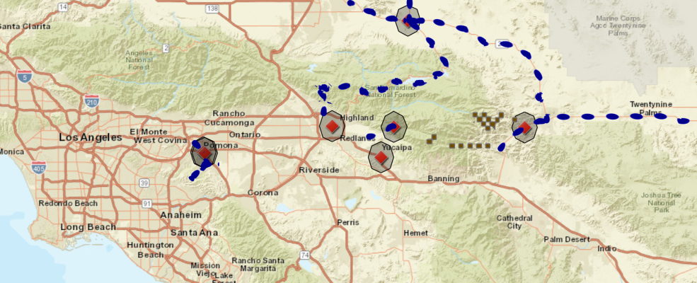 For example, Jim is a Highway Engineer working for the Department of Transportation, and he is performing some fact checking with interstate highways in California. Let's see how he takes advantage of the arcgis.geometry.filters in answering these questions: