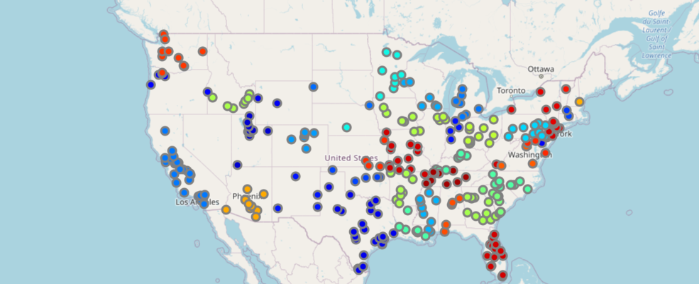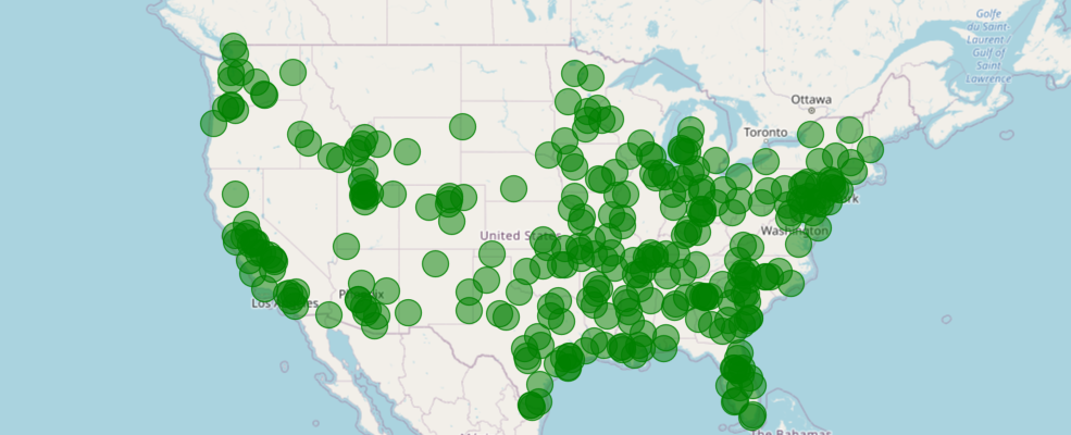 In the snippets above, you visualized all the features with the same symbology. While this helps understand the geographic distribution of your data, your Spatially Enabled DataFrame object can do much more. For instance, you can group the features based on certain attributes that you choose and symbolize each group by a certain color or size or both. To help with this, let us understand the concept of renderers.
