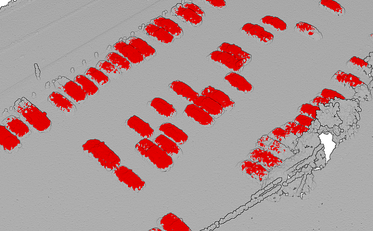 Any SfM-derived point clouds and areas of interest can be used, but for this sample, we are using point clouds generated by Site Scan for ArcGIS, using drone imagery of some parking lots in the United States. The dataset already has points labeled for 'cars', represented by classcode '18', and 'background', represented by classcode '0'.