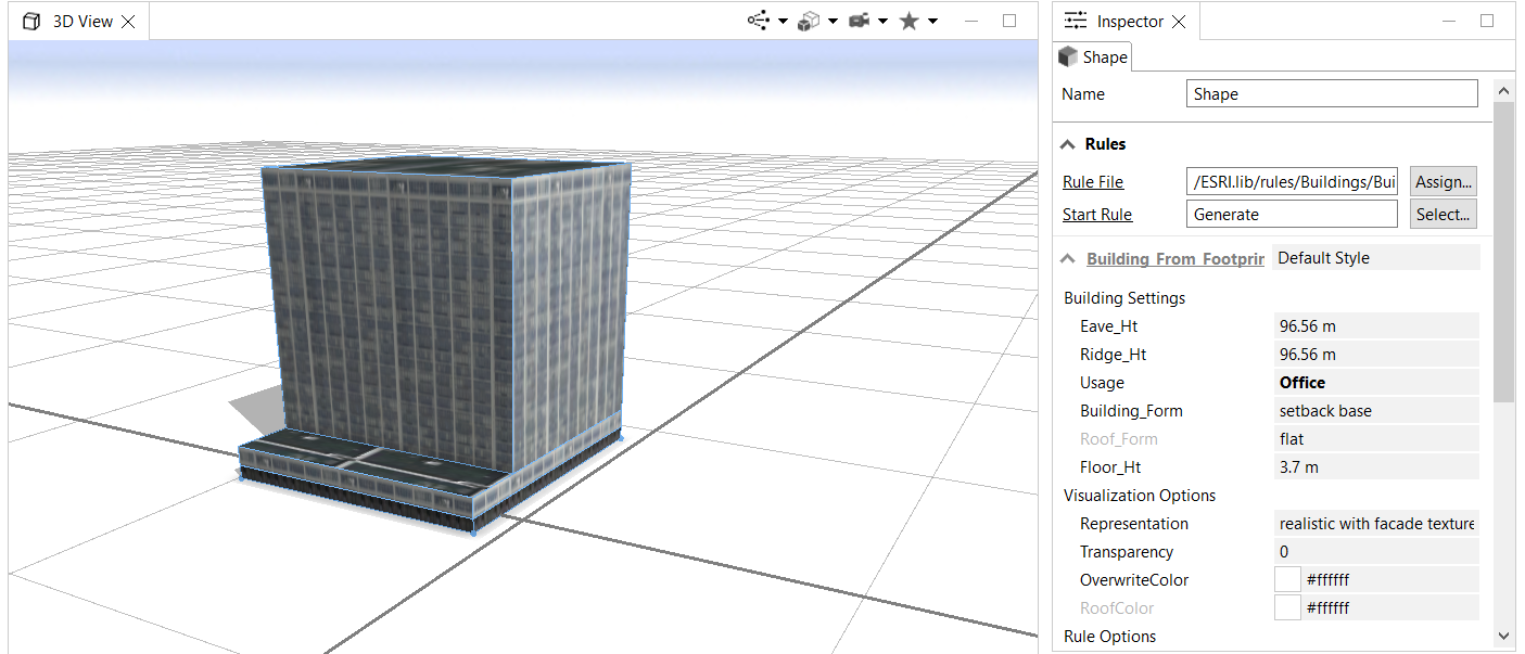 Lastly, these footprints are used to generate realistic 3D models/multipatches using City Engine's rule packages. Where Features From CityEngine Rules is used. The rule package used in this sample can be downloaded from here. It is created using City Engine's CGA rules, and the 'connection attributes' can be noted down from City Engine (as shown in figure 11).