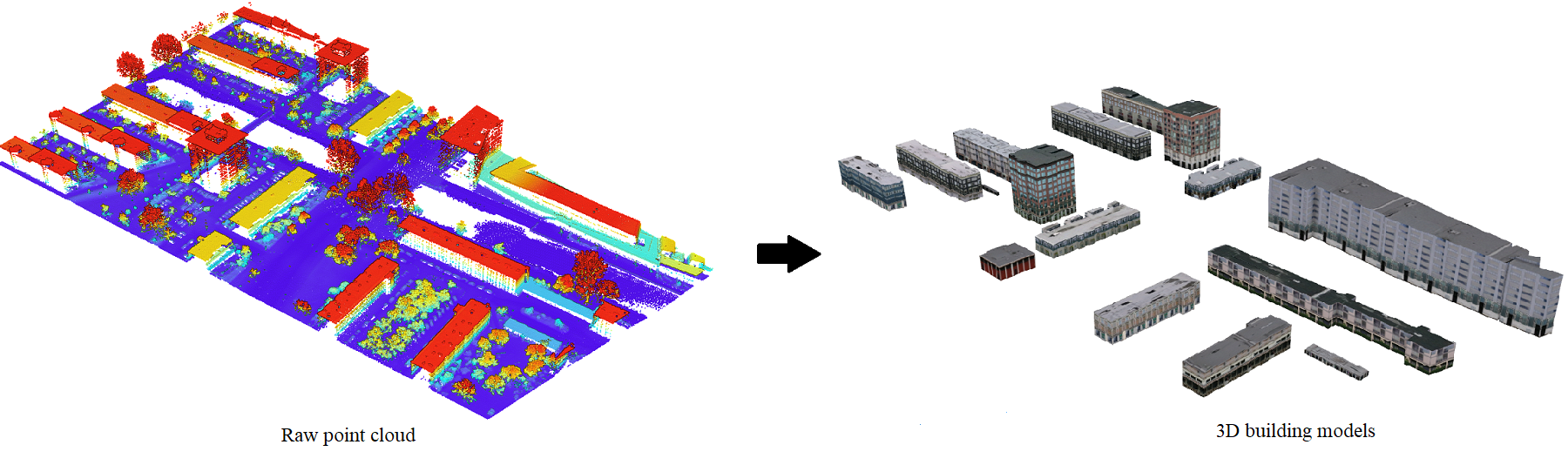 Classification of point clouds has always been a challenging task, due to its naturally unordered data structure. The workflow described in this sample is about going from raw unclassified point clouds to digital twins: near-perfect representation of real-world entities. Within the scope of this sample, we are only interested in 'digital twins of buildings' (3D building multipatches/models). This work can also be used for guidance, in other relevant use-cases for various objects of interest.