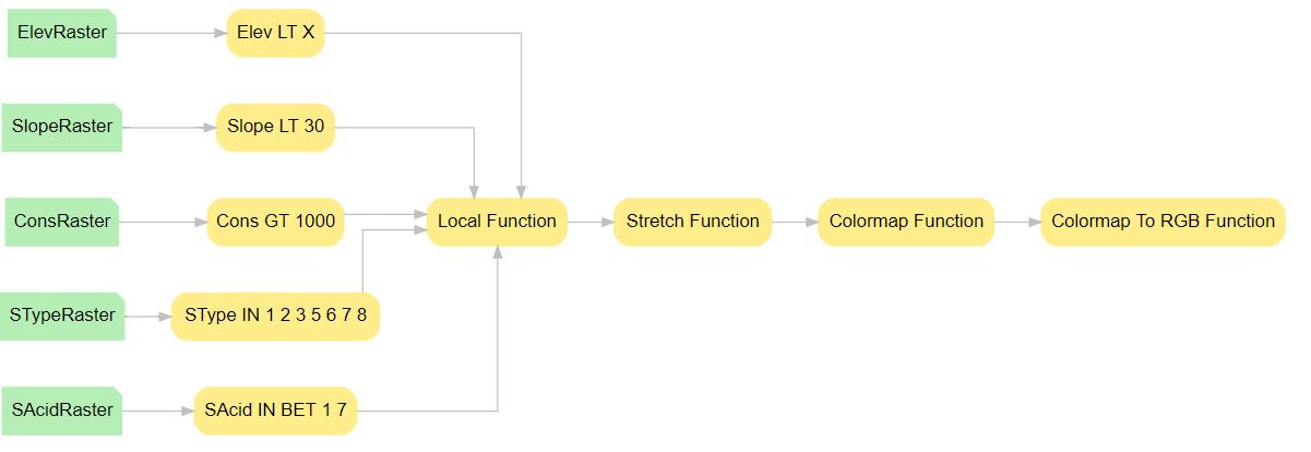 Based on these criteria, a raster function template was created using ArcGIS Pro. You can acquire the RFT using the following item.
