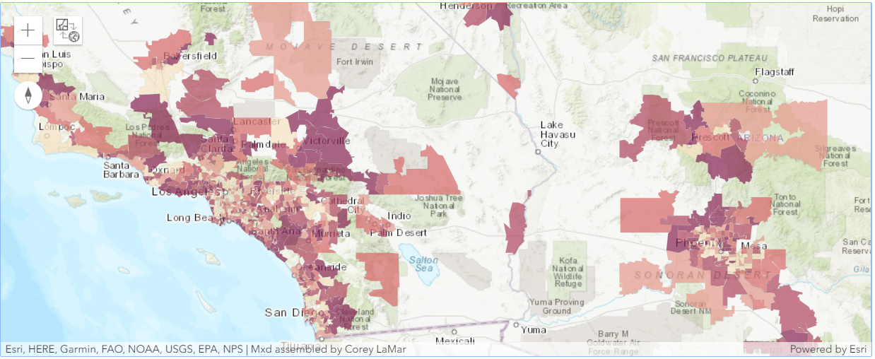 m6.add_layer(drive_time_lyr)The dark ZIP Codes have the most expensive average home value estimates.