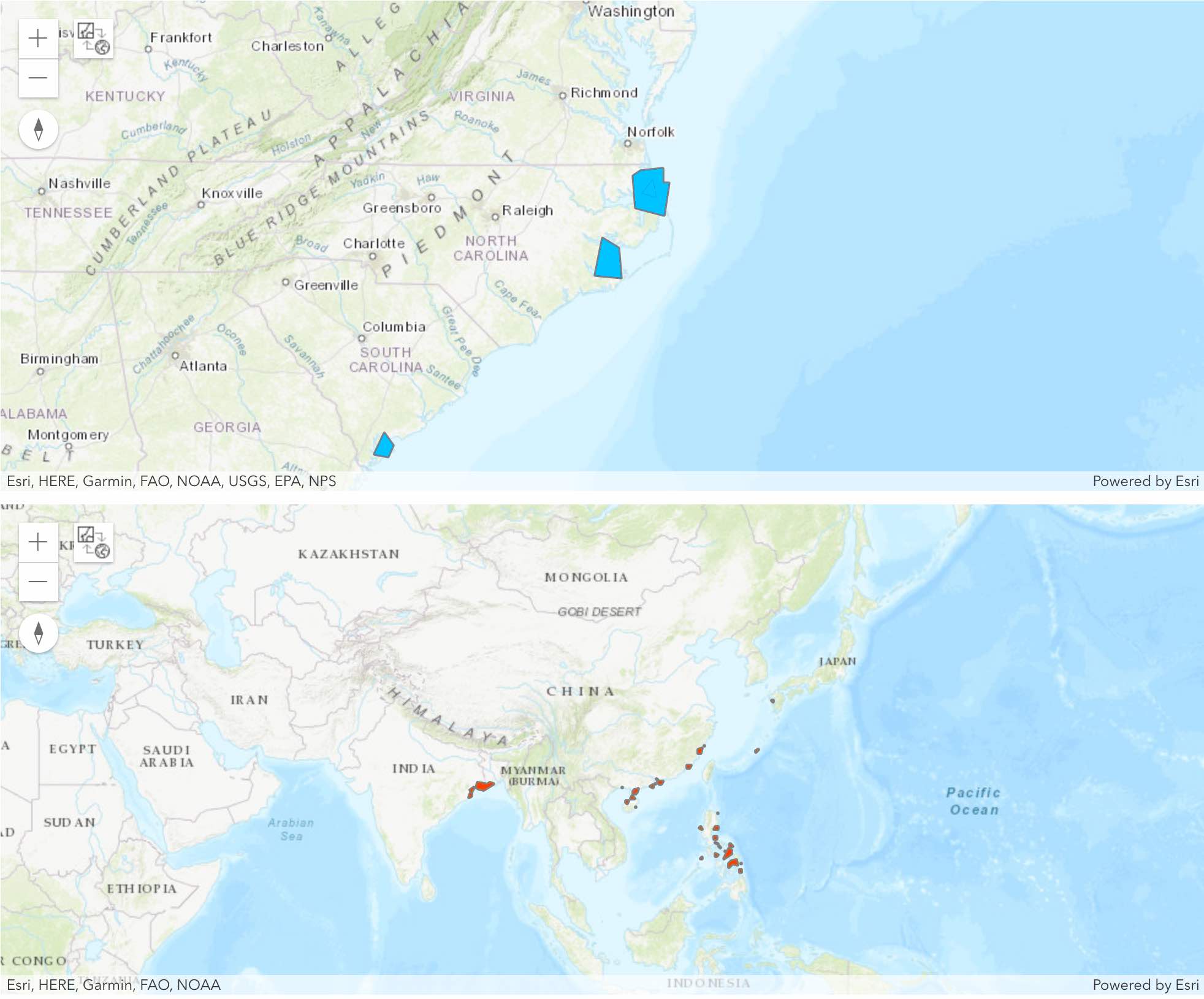 high_density_landfall_map1 = gis.map('North Carolina')