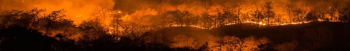 With this, we have computed the NBR on scenes from before and after the burn, and computed the NBR difference to identify places that have been affected by the fire. We've also normalized the values to match a burn severity index, and applied a color map that brings out the extent of fire damage.