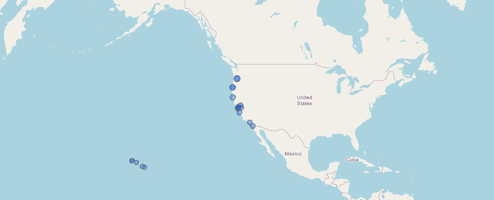 In the examaple below, let us create buffers of 50 mile radius around major ports along the West Coast of the USA.