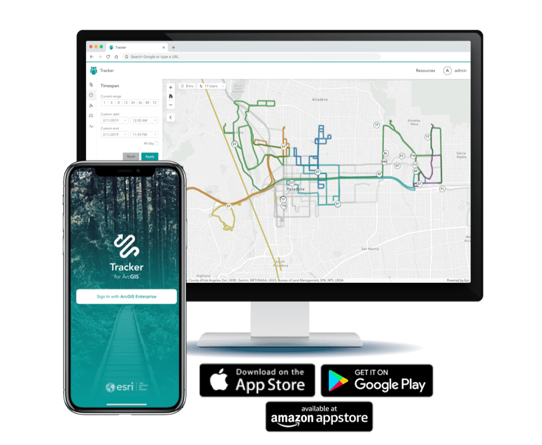 ArcGIS Tracker empowers location tracking, using two apps: the Track Viewer web app and the ArcGIS Tracker mobile app. The Track Viewer web app enables administrators to create track views, defining who is tracked and who can view those tracks. The Tracker mobile app is optimized for tracking locations in the field, running in background while minimizing the impact on device battery. The mobile app records tracks whether or not there is a data connection, and gives mobile users control of when they are and aren't tracked.