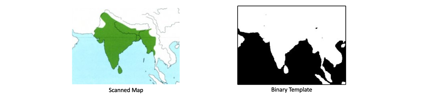 The data used in this guide are the scanned maps extracted from the series of handbooks called Mammals of the World, a series which contains the information of species across the world, including regions where the species are found. We extracted the images from the scanned book in order to Geo-reference and digitize the species on the search region image (for instance, world map).