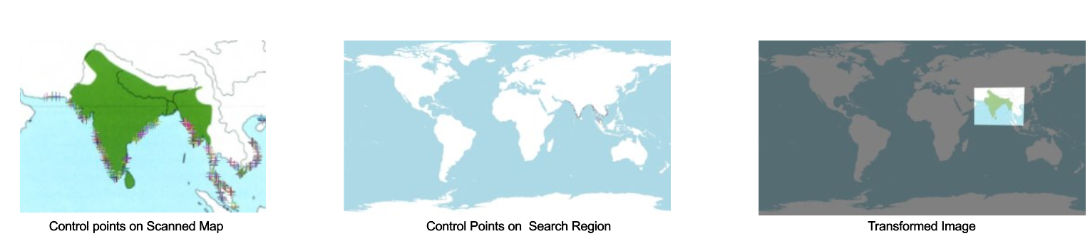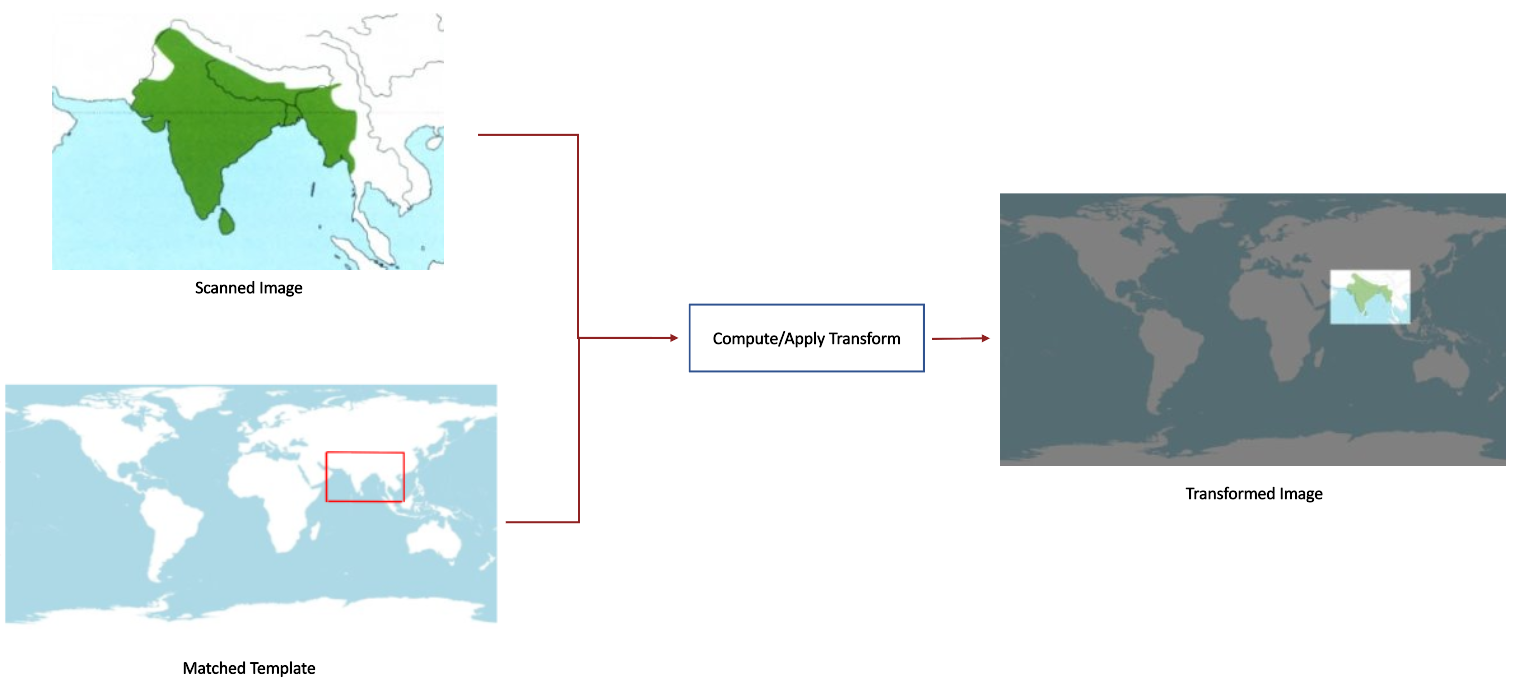 Valuable Geo-spatial information is contained in a wide variety of maps available in the form of images. Unfortunately, we can’t analyse this data without digitizing it. The conventional approach is to manually extract data and store it in a digital format. This guide details a method using computer vision techniques to automatically extract details from a set of scanned maps, find reliable feature points (control points), register the maps to different parts of the world, and ultimately overlay the valuable Geo-spatial data depicted in these maps onto the search region image (for instance, world map).