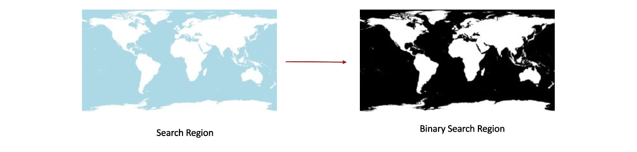 This method prepares the search region in which the prepared templates are to be searched. Specifically, it produces the binary mask corresponding to the land region in an image (bigger than the template image). This method accepts an image or a shapefile as input.