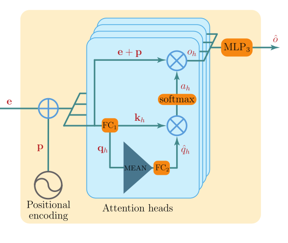 - The goal is to encode the whole time-series into single embedding, rather then generate one for each element of sequence. To achieve this, query tensors generated by the each attention heads are pooled into single master query.