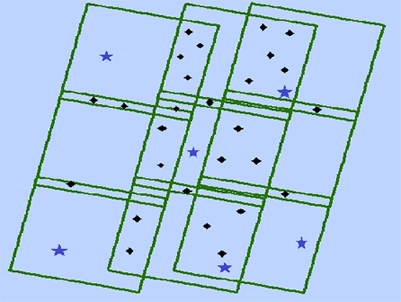 Fig 1. Inside each mosaic item, the blue stars represent ground control points (GCP), and the black diamonds represent the tie points (Source: [4])