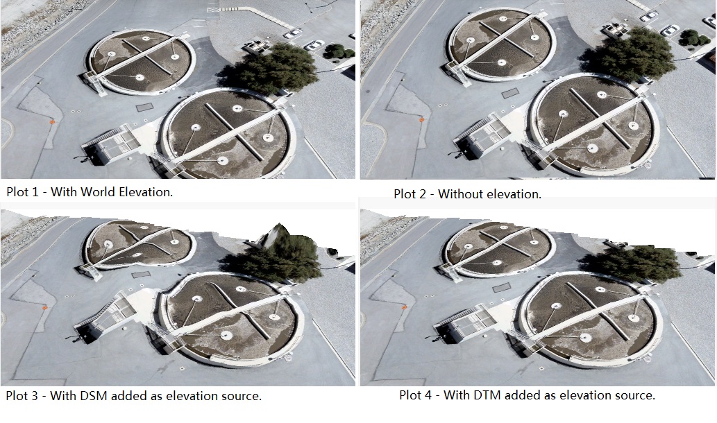 From steps 3.2.1 and 3.2.2, we are getting two products, the DTM and the DSM. Let's visualize with the chimney structure at the study site (with varied elevation sources) to further understand the differences.