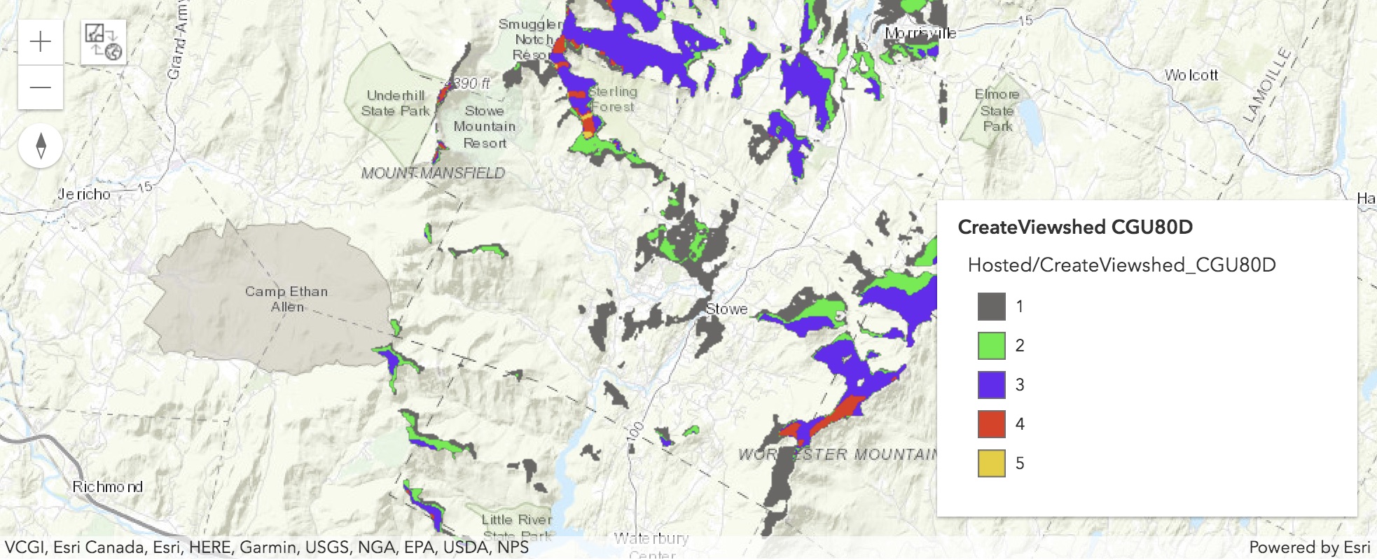 items1[0]input_raster = items1[0].layers[0] # elevation/DEM raster layermap1 = gis.map('Stowe, Vermont, USA')