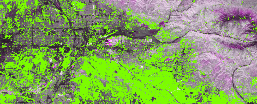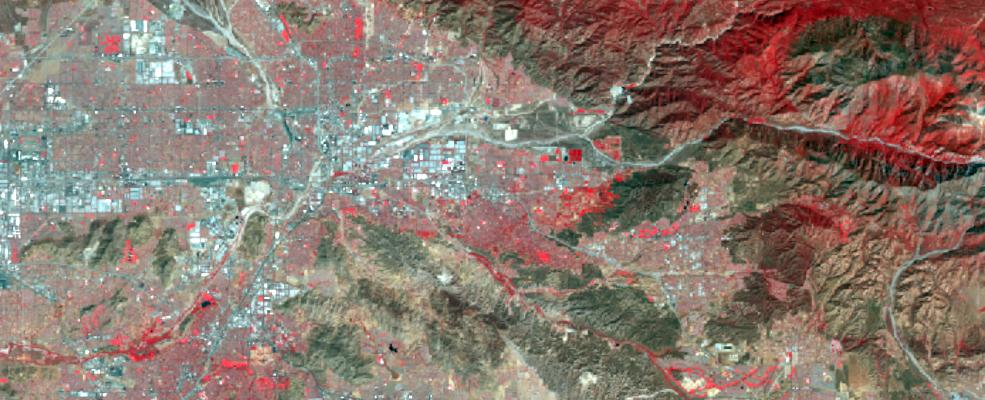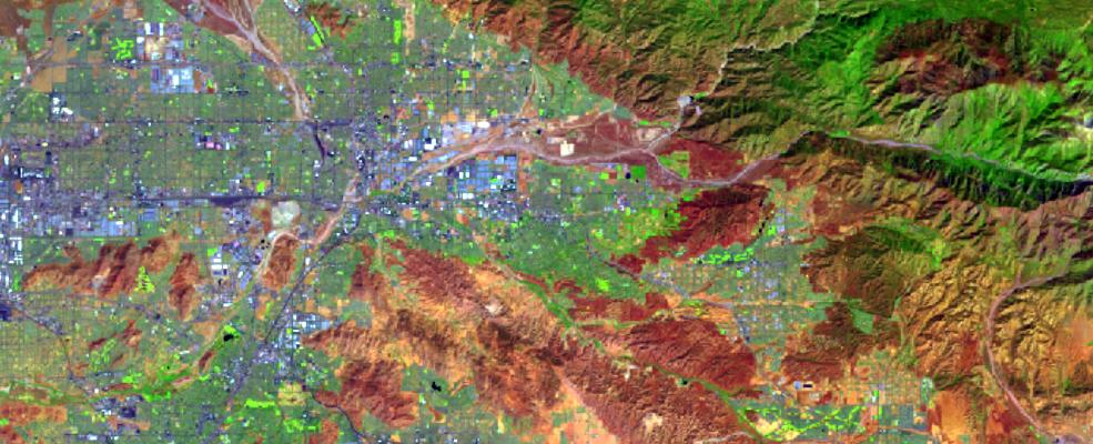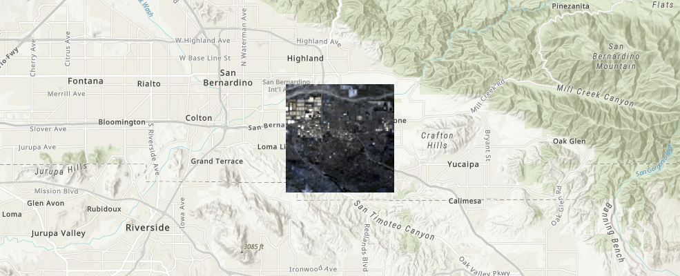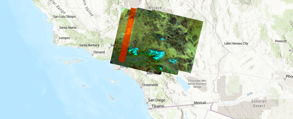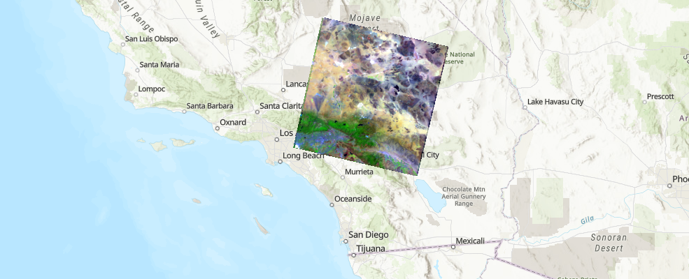 This imagery layer item contains the imagery layer that we'll be using for this tutorial. Let's save a reference to the layer in the landsat variable. Querying the variable in Jupyter Notebook will quickly render it as an image.