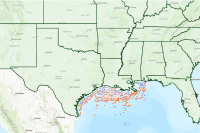 'snippet':'Map created using Python API showing locations of US oil platforms and crude trunks.',