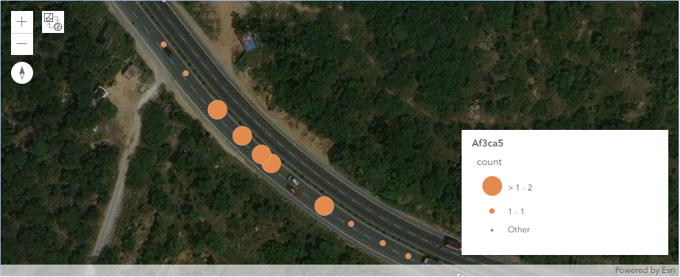 df_flt = df.iloc[max_detection_idxes]df_flt.drop(df_flt.loc[df['count']==0].index, inplace=True)sdf = GeoAccessor.from_xy(df_flt, 'Sensor Longitude', 'Sensor Latitude')cracks_lyr = gis.content.import_data(sdf, title='crack points')cracks_lyrm1 = gis.map('Haryana, India')