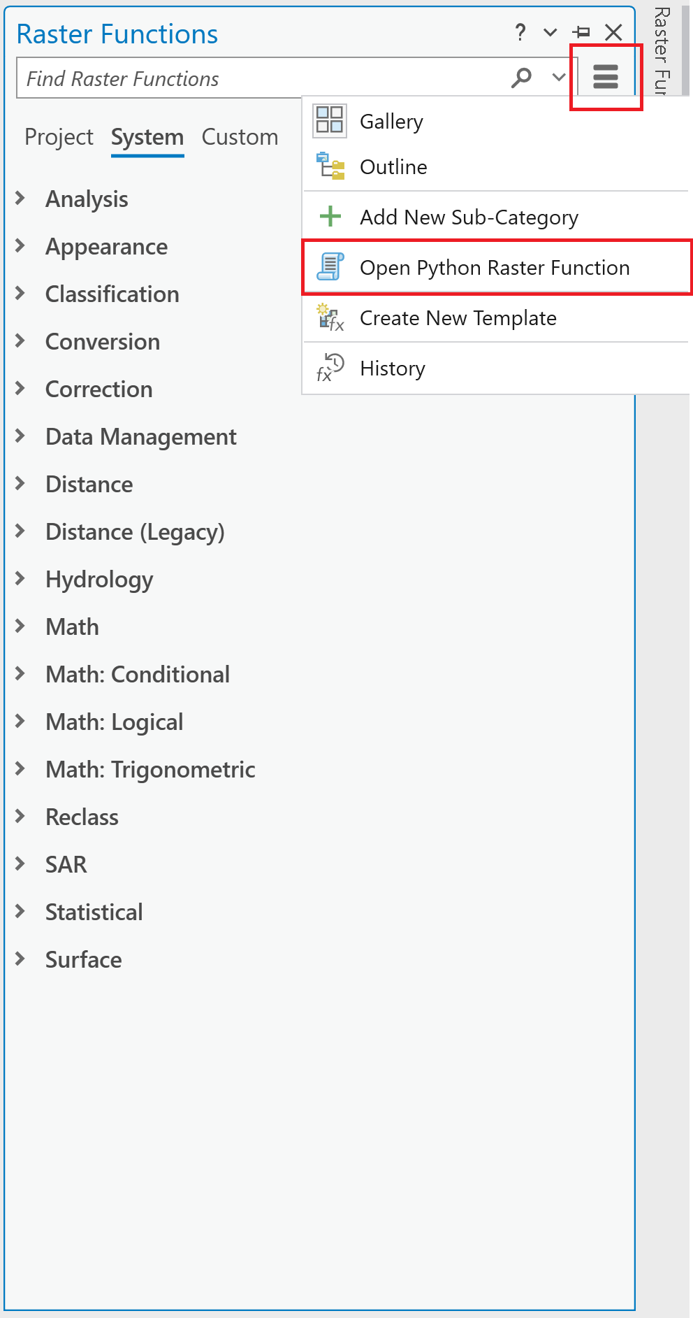 The raster functions can be downloaded as a python (.py) file from raster functions in the functions folder. The StepwiseLocalRadiometricAdjustment.py file can be opened using Open Python Raster function as shown in figure below. Once opened, save it using Save As available in drop down, it will result in a .rft(raster function template) file . You can experiment with different values for the Size of Window and Buffer Mask parameters to achieve varying results based on your requirements and cloud coverage.