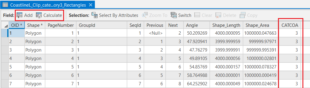 Next, we add a category column to the feature class that can act as the class value field while exporting the data. We created a category column of the long data type named CATCOA. In this column, we set the value to be the same as the feature's coastline category using the Add and Calculate options respectively, as shown in figure 4.