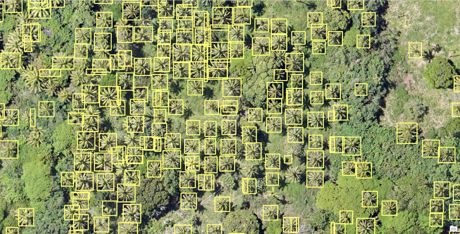 In this notebook, we saw how we can use DetREG deep learning model and high-resolution satellite imagery to detect palm tree. This can be an important task for monitoring and conservation purposes. We used only handful of images as training data and trained a pretty good modl with DetREG available in arcgis.learn. We trained the deep learning model for a few iterations and then deployed it to detect all the palm trees in the Kolovai imagery. The results are highly accurate and almost all the palm trees in the region have been detected.