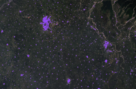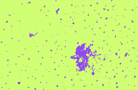 Output of this tool will be in form of a 'classified raster' containing both background and Settlements. The pixels having background class are shown in green color and pixels belonging to settlement class are in purple color.