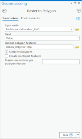 We can now run 'Raster to Polygon' tool in ArcGIS Pro to convert this masked raster to polygons.