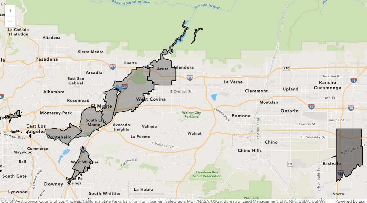| 2 | 14 | 1 | USA | -117.552866 | 34.064359 | NetworkServiceArea | Minutes | Drive Time Minutes | 45.0 | BlockApportionment:US.BlockGroups;PointsLayer:... | ... | 3.74 | 0.183214 | West Whittier-Los Nietos | 8.272251 | 485500.0 | 0.072375 | 14136917.117188 | 22634.260753 | 8.36099 | {"rings": [[[-13143194.2534, 4028915.1404], [-... |