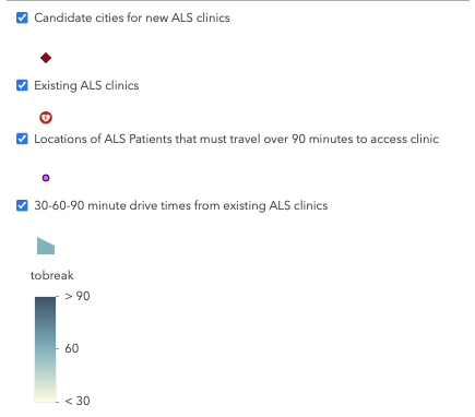 Note: The examples in this notebook is intended to serve only as a technology demonstration. The analysis results should not be used for any planning purposes as the data for ALS patient locations are fictional. The ALS clinic locations were obtained from data that was publically available in October 2017.