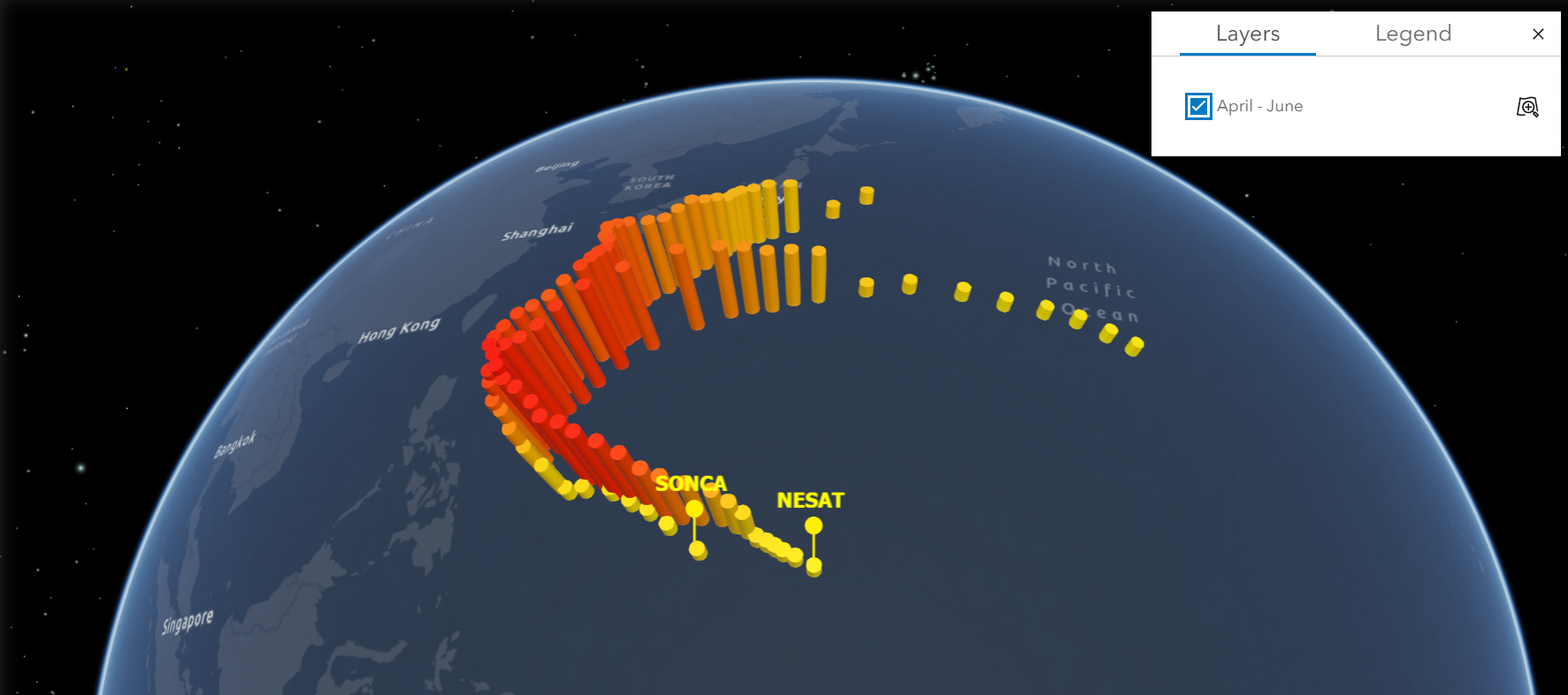 new_web_scene_obj = web_scene_objnew_web_scene_obj.content.layers[<FeatureLayer url:"https://services.arcgis.com/P3ePLMYs2RVChkJx/arcgis/rest/services/PacificTyphoons2005_WFL/FeatureServer/18">, Group Layer: April - June]